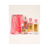 Incluye gel de ducha (295 ml), bruma perfumada (237 ml), loción corporal (237 ml) y crema de manos (30 ml).