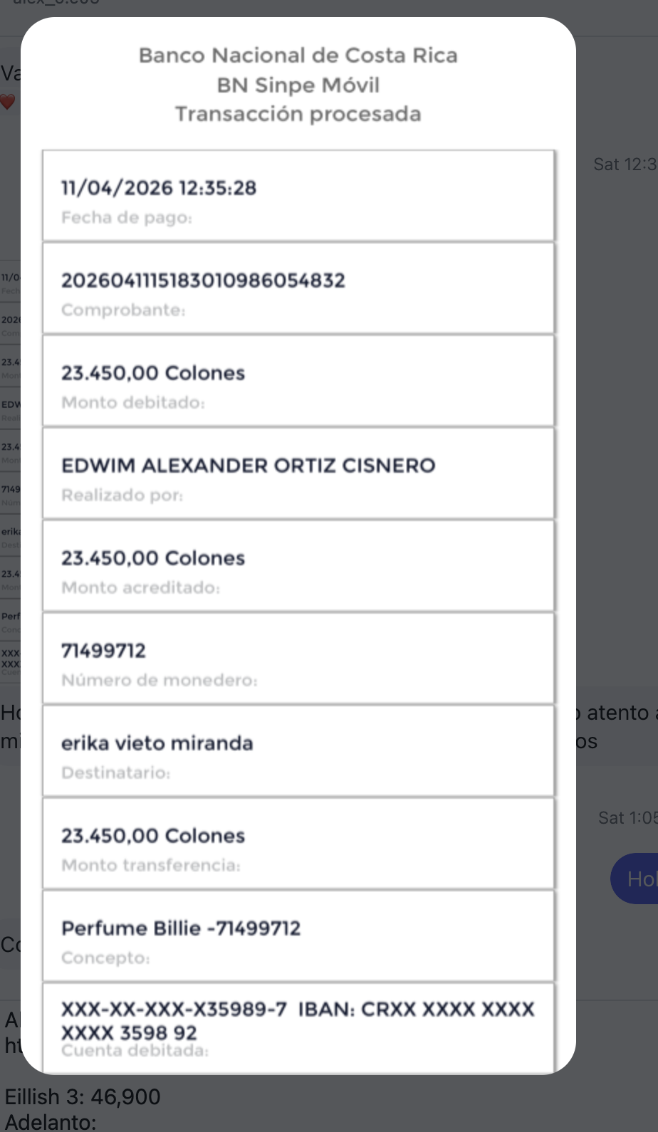 Eillish 3: 46,900 Adelanto: 23,450
