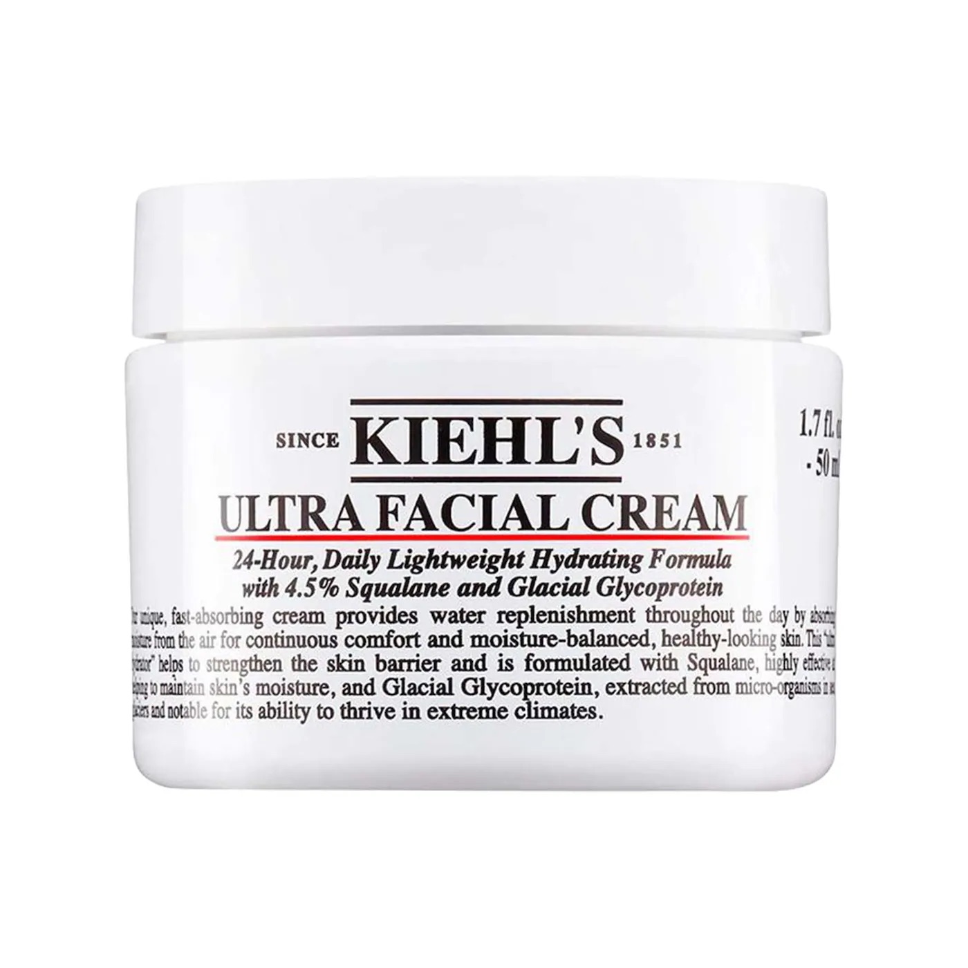 Una crema facial superventas formulada con escualano, glicoproteína glacial y pro-ceramidas para reforzar la barrera cutánea y proporcionar hasta 72 horas de hidratación.
