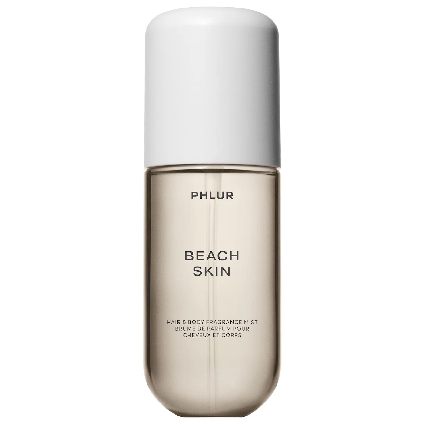 - PHLUR Beach Skin Body & Hair Fragrance Mist. Familia olfativa: Fresca. Tipo de fragancia: Fresca Solar. Notas clave: Bergamota, Flor de Tiaré Salada, Sándalo. Descripción de la fragancia: Esta bruma corporal solar de larga duración captura la caricia del sol sobre la piel. Suaves flores de tiaré se mezclan con sutiles toques de brisa marina, acentuados por la bergamota cítrica. Un velo de leche de coco y sándalo perdura en la piel, dejando una sensación cremosa, ligera y sensual. Ideal para usar durante la hora dorada o en cualquier momento para una escapada sensorial instantánea.