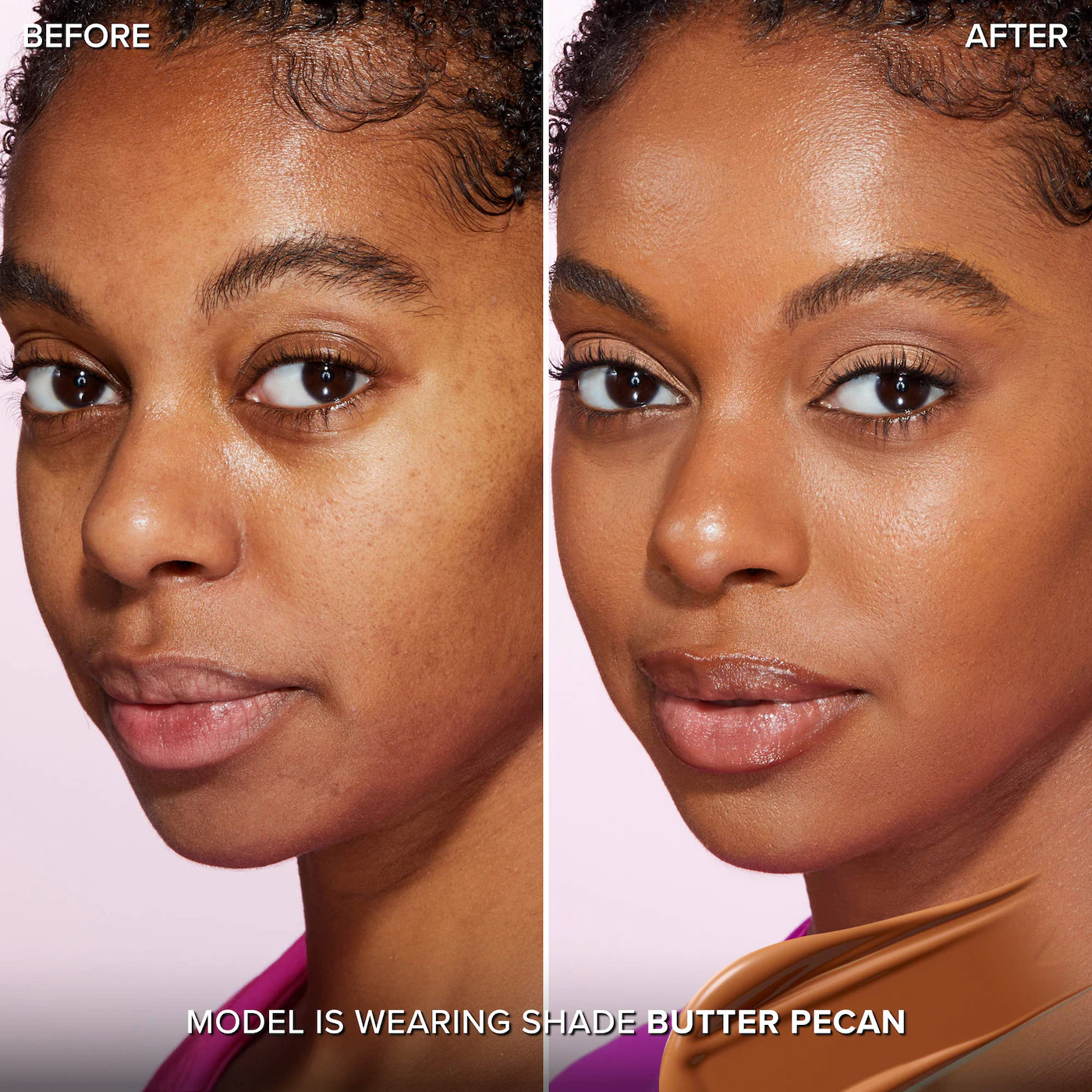 El tono “Butter Pecan” de Too Faced es para pieles medias con un subtono cálido y dorado. Es un tono de base de la línea Born This Way, conocida por su cobertura modulable de media a alta y su acabado natural. Su fórmula no contiene aceite, es hidratante y busca un acabado imperceptible, similar a la piel, gracias a una combinación de ingredientes como agua de coco, rosa alpina y ácido hialurónico.